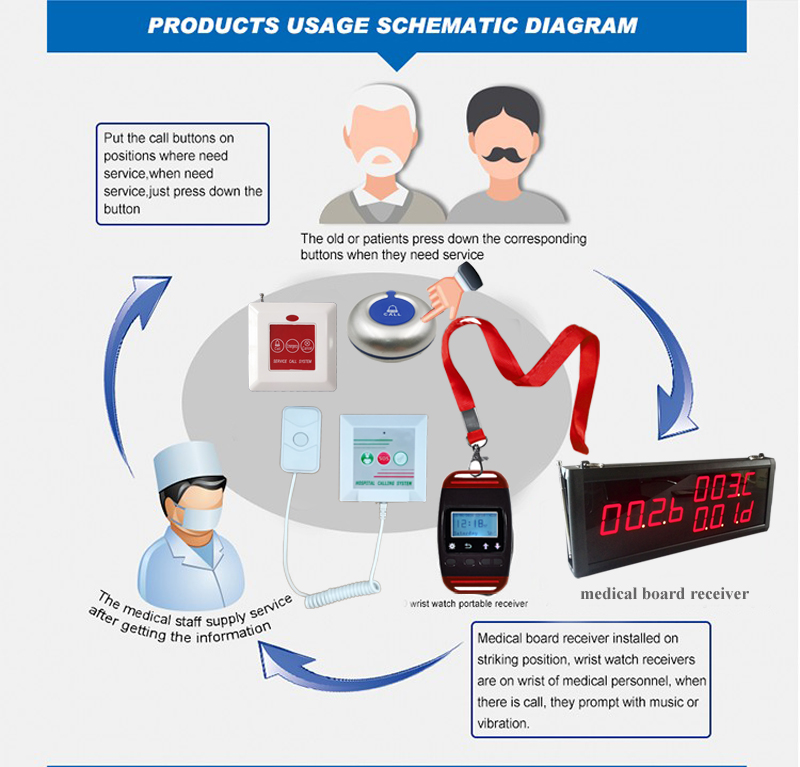 botón de llamada instalado al lado la cama de la sala o en la sala de tratamiento, puede equipado con largo
