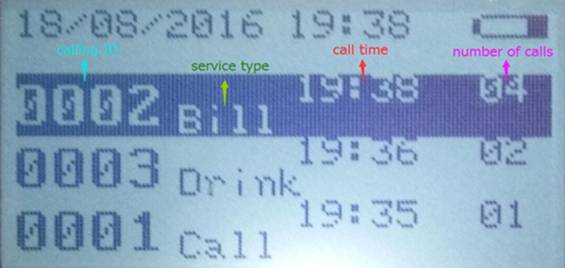 Cuando el huésped necesita algún servicio, puede presionar el botón en la mesa, el número de la mesa se mostrará en el RECEPTOR del reloj o en la pantalla con un claro sonido o vibración "dingdong". Por lo que el mesero podría ofrecer un servicio muy oportuno.