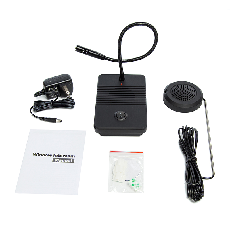 3. intercomunicador de ventana de contador de banco es fácil de usar; solo necesita conectarse con un adaptador de corriente y un altavoz externo a la estación principal; el cable del micrófono es flexible.
