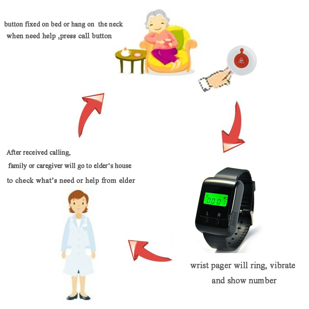 cuando necesite ayuda, simplemente presione el botón de llamada sin gritar. el localizador portátil vibrará o hará un ruido de alerta. solo alerta al cuidador nocturno, no despertará a los demás.