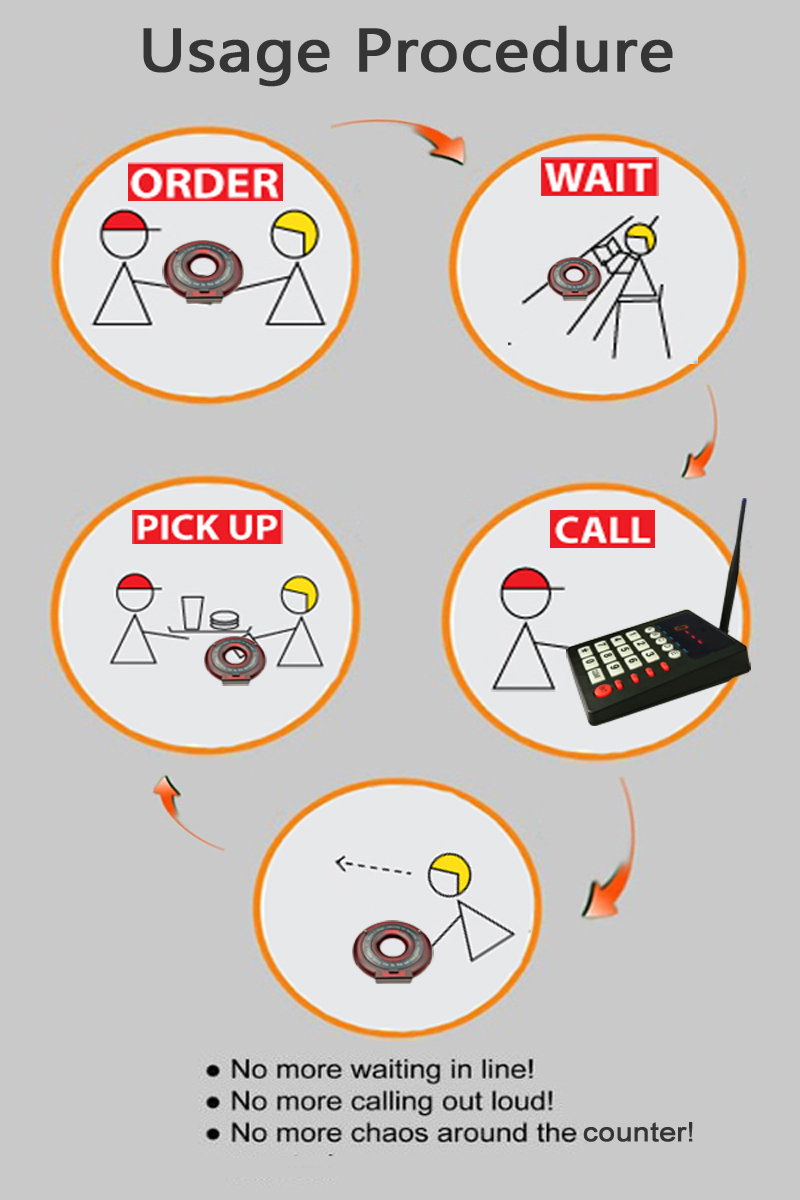 las personas que sostienen el buscapersonas sabrán la información que los platos o el servicio están listos para ofrecer y la tomarán antes.