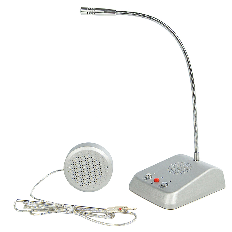 Esta intercomunicador de ventana Los kits son aplicables a cualquier ventana donde sea diferente para comunicarse, para lograr el cambio automático bidireccional de la comunicación de voz entre el cliente y el empleado que están dentro y fuera del vidrio de la ventana; que puede obtener el mejor efecto de comunicación. Este producto adopta el chip de procesamiento de lenguaje más avanzado con un diseño único y una gestión de calidad estricta, puede alcanzar los más altos estándares en calidad de sonido, volumen, anti-jamming, anti aullidos y otros rendimientos.