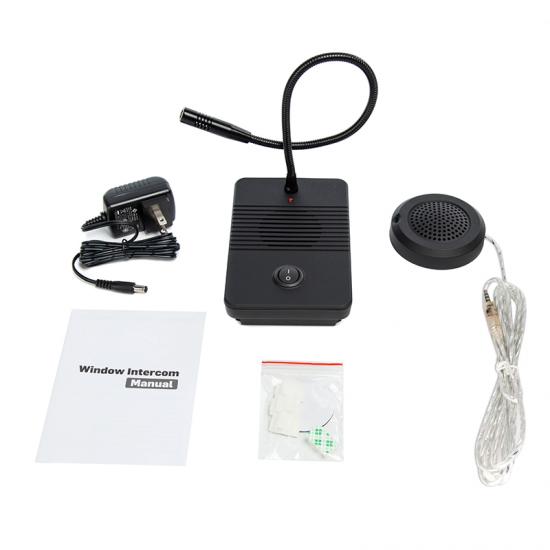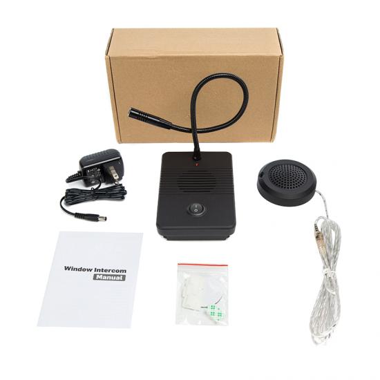 3. intercomunicador de ventana de contador de banco es fácil de usar; solo necesita conectarse con un adaptador de corriente y un altavoz externo a la estación principal; el cable del micrófono es flexible.