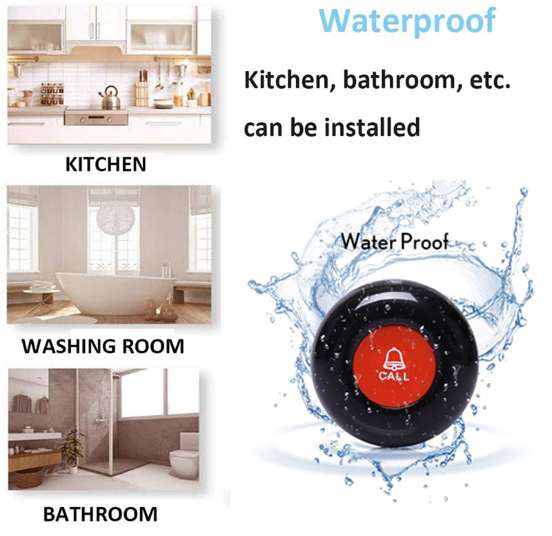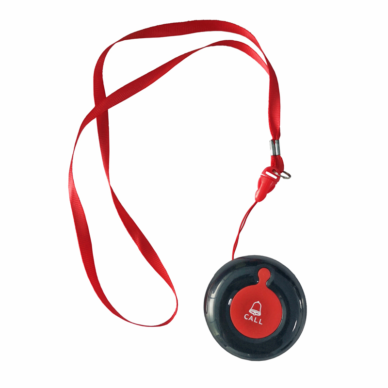 1. botón de llamada con cordón, fácil de llevar, se puede poner en el bolsillo o colgar al cuello adecuado para personas que necesitan cuidados y asistencia, como pacientes / ancianos / residentes / niños